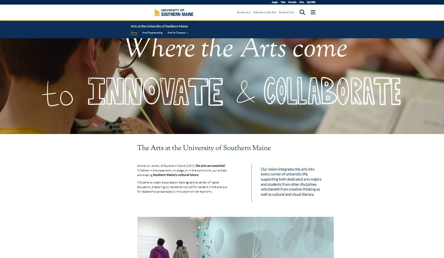 In 2025, we launched a new design for one of our subsites - the Arts here at the University of Southern Maine (USM) — working with our in-house team, we developed a new visual identity, updated our navigation and UX, and added engaging media to tell the story of the Arts at USM.